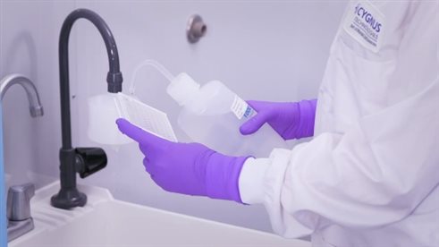 因此,Cygnus專(zhuān)家建議在使用Cygnus ELISA試劑盒時(shí)盡量采用手動(dòng)洗板的方法。該方法簡(jiǎn)便易學(xué),無(wú)需任何特殊設(shè)備。只要準(zhǔn)備一些低纖維吸水紙和一個(gè)洗瓶就可輕松操作,需要注意的是洗瓶的出水口要修剪成大開(kāi)口斜面以確保洗液的充分流動(dòng)與合適的沖洗力度。