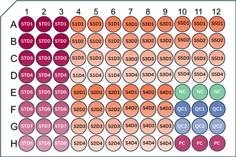? 在ELISA實(shí)驗(yàn)之前應(yīng)該合理規(guī)劃孔板布局:優(yōu)化的孔板布局能夠監(jiān)測(cè)關(guān)鍵性能指標(biāo),并在出現(xiàn)問(wèn)題時(shí)更快地進(jìn)行問(wèn)題排查。更多布板示例請(qǐng)點(diǎn)擊這里獲取。