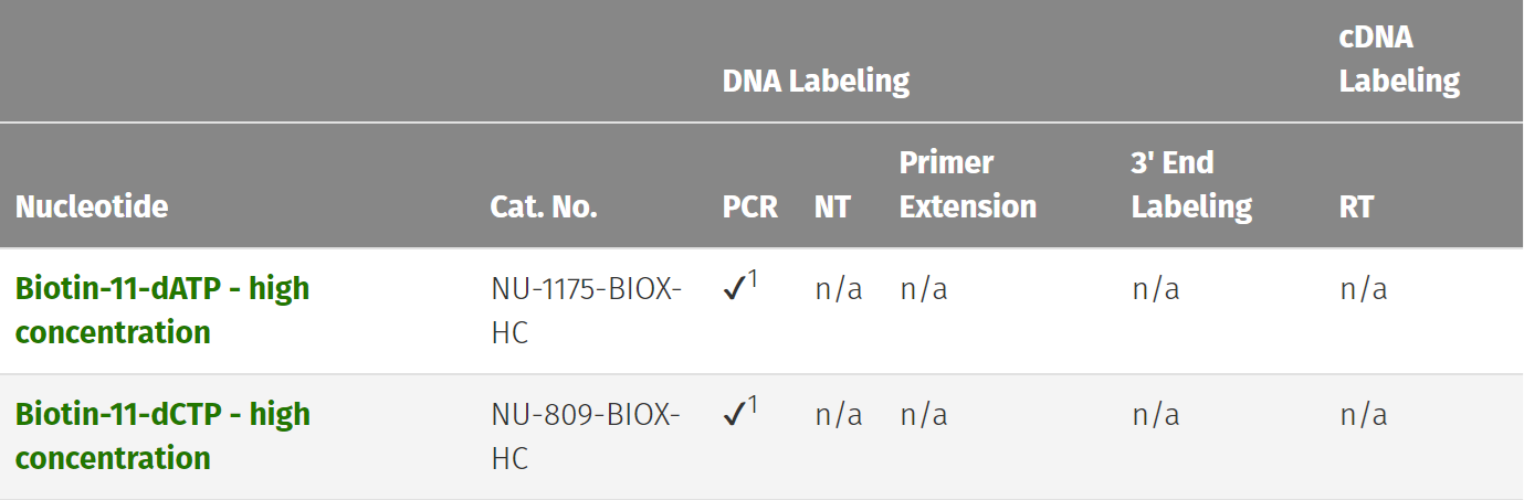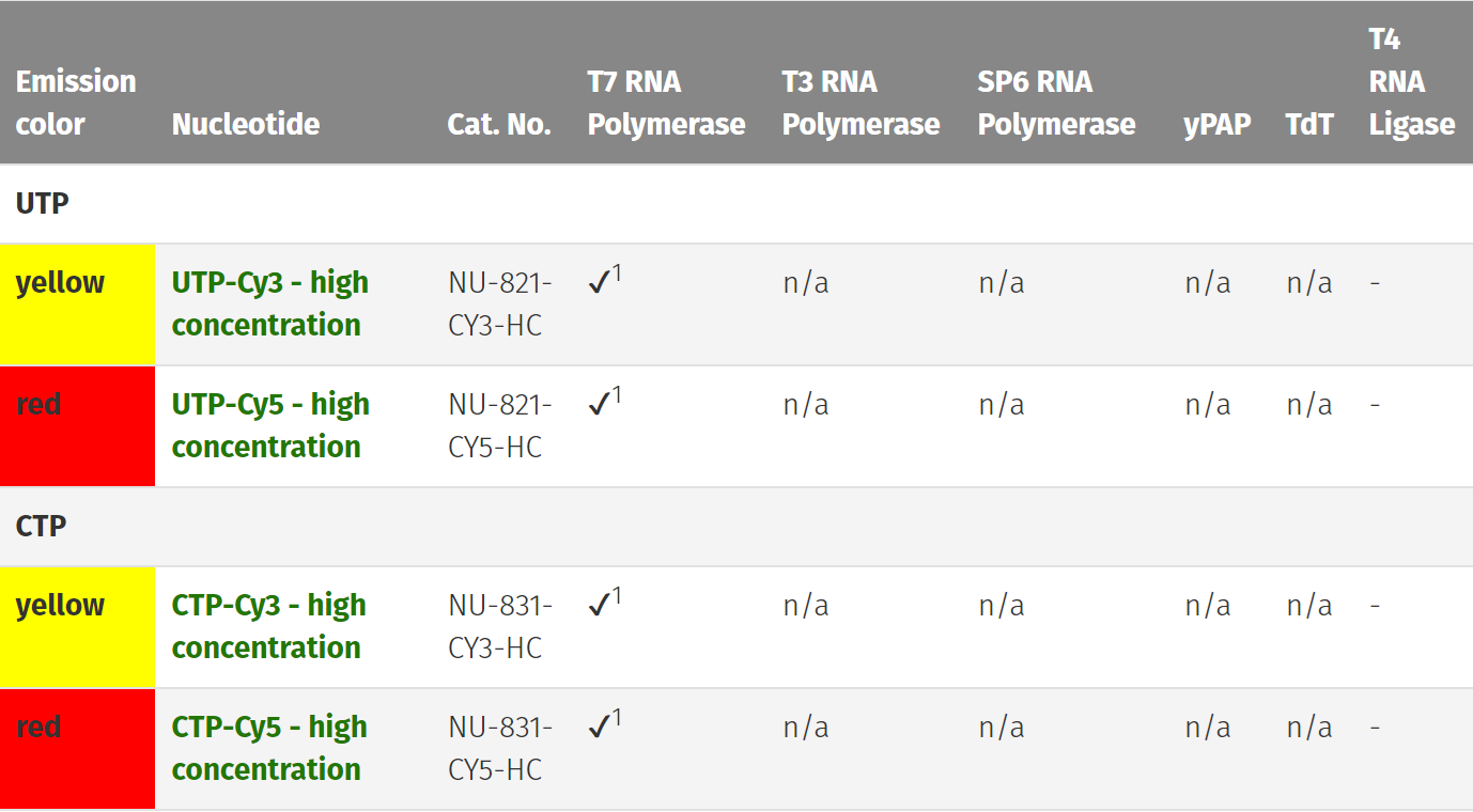Now, the Jena Bioscience brand (distributed by Ximeijie) offers labeled nucleotides for non-radioactive labeling of DNA and RNA, including Cy3-labeled nucleotides and Cy5-labeled nucleotides at a concentration of 10 mM, as well as biotin-labeled nucleotides at a concentration of 5 mM.